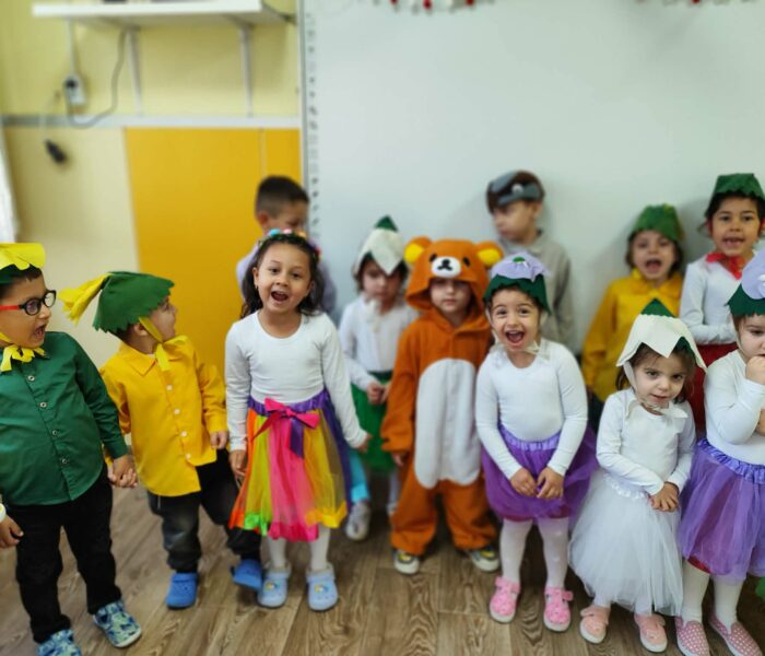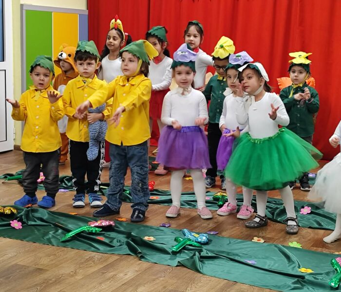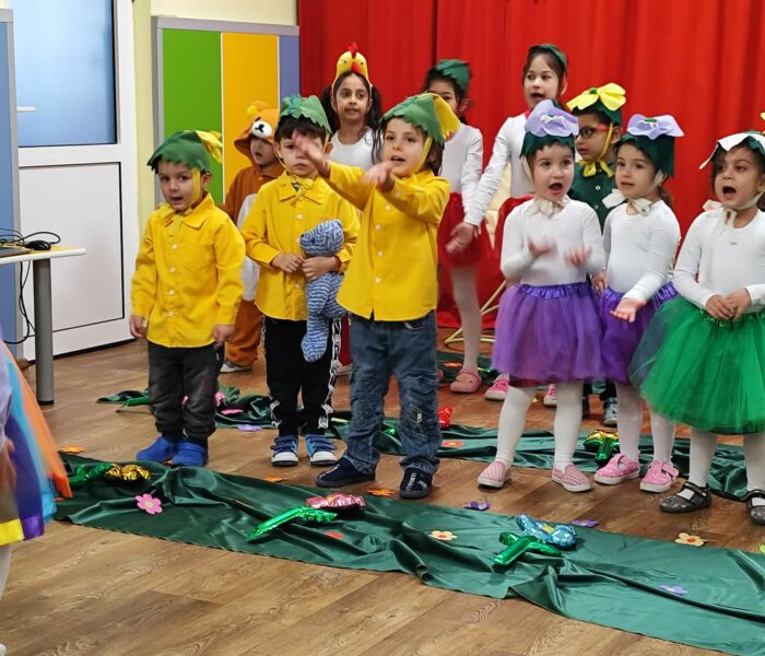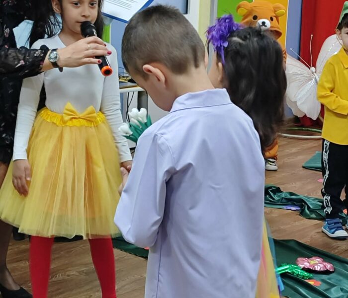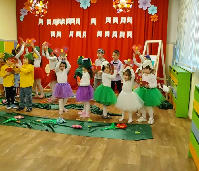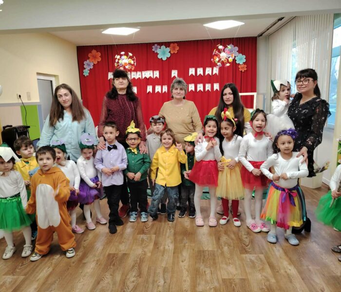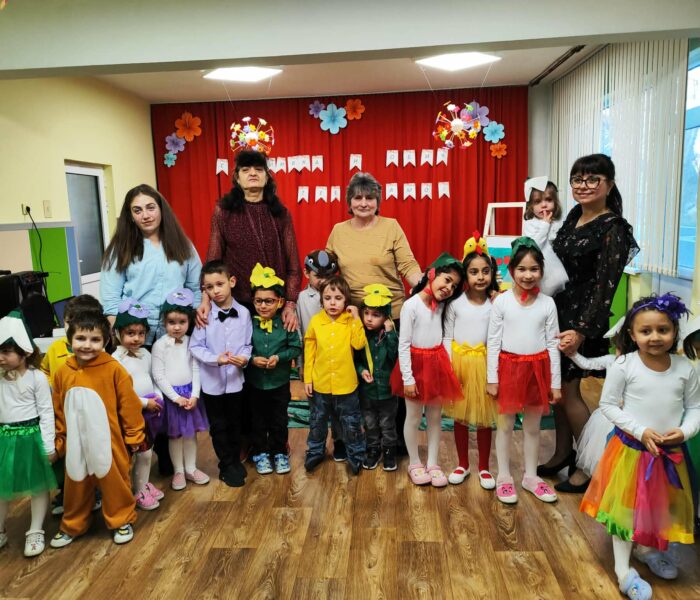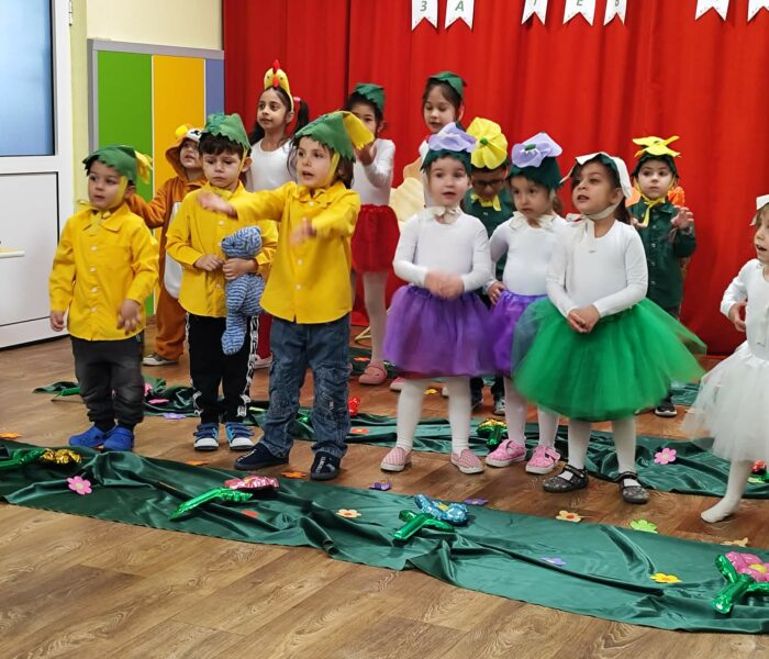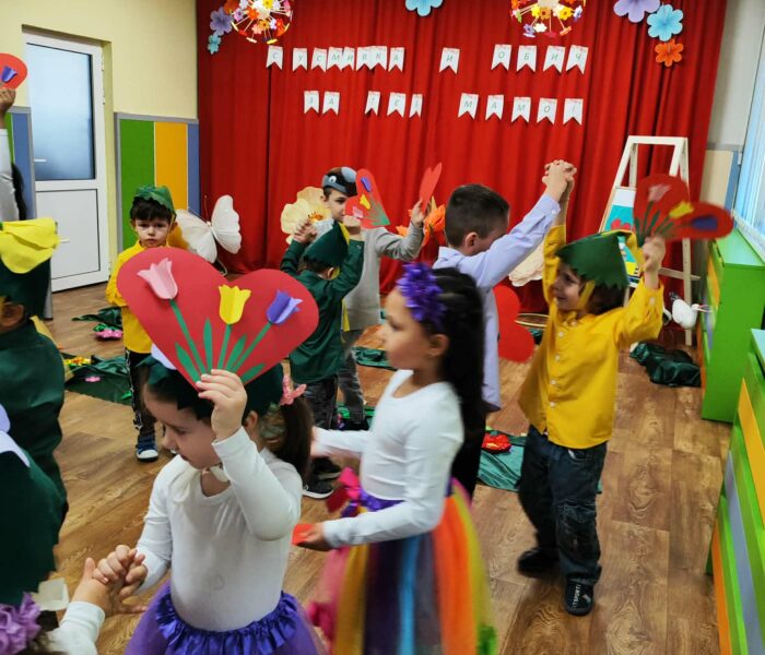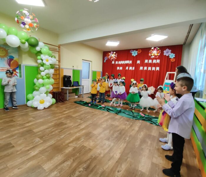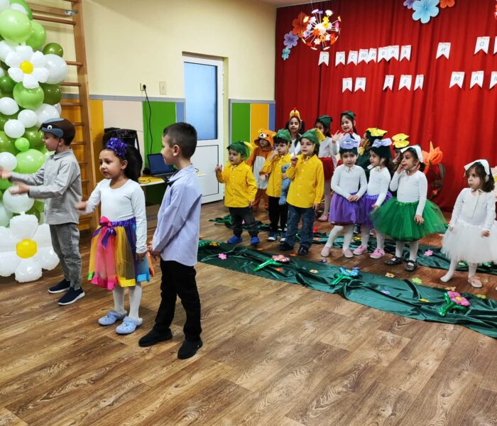 Декорацията в градината създаваше усещане за разцъфнала пролетна градина. Малките артисти бяха облечени в прекрасни костюми – видяхме нежни цветя с пъстри полички, сръчни пчелички, горски животинки и слънчеви герои в жълто. Сцената беше изпълнена с енергия, докато децата рецитираха стихове и пееха песнички, държейки микрофона с истинско самочувствие на големи звезди
