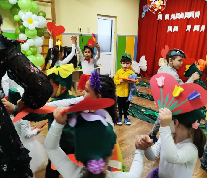 Един от най-вълнуващите моменти беше танцът с големи червени сърца, украсени с ръчно изработени лалета. Всяко движение на децата беше наситено с искреност, а гордостта в очите им, докато показваха своите творения, беше най-добрият подарък за родителите.